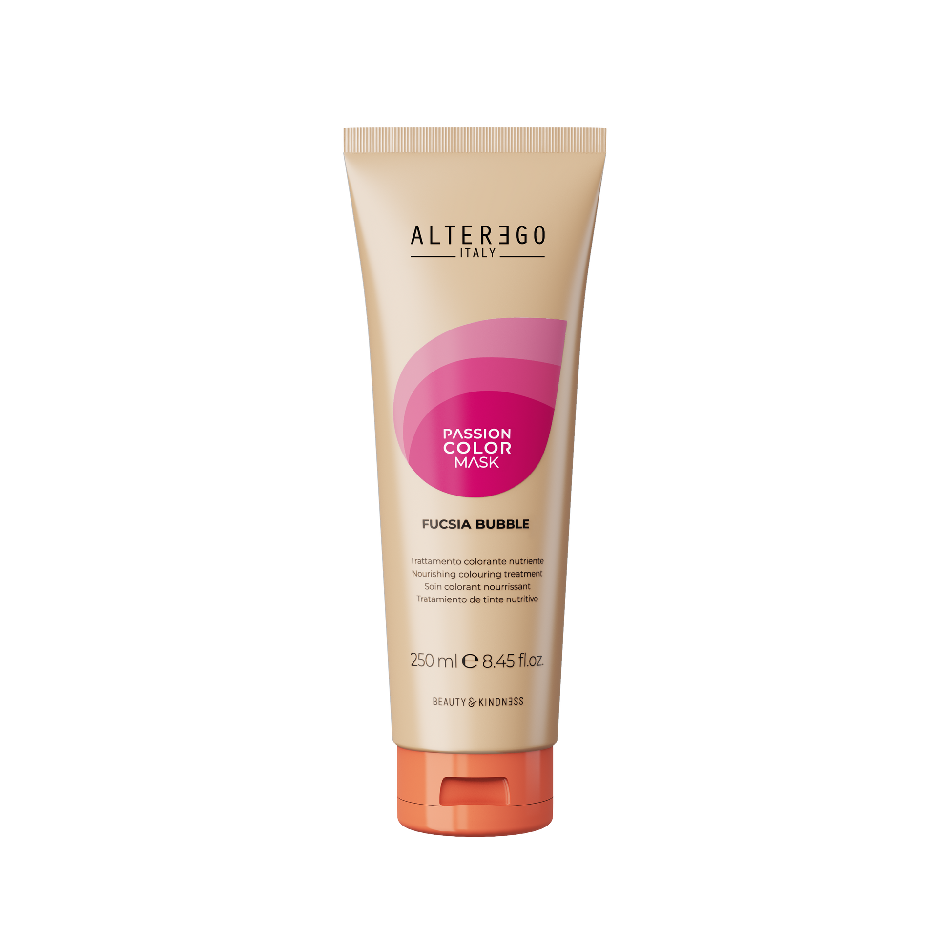 Passion Color Mask est la gamme de coloration directe Beauty & Kindness qui protège et colore les cheveux pour sublimer, intensifier et expérimenter. Ce produit est un concentré d'ingrédients aux propriétés revitalisantes et illuminatrices. Sa formule préserve la structure du cheveu, améliorant son apparence et lui procurant des reflets éclatants, de la brillance et une douceur extrême. Tous les Passion Color Mask peuvent être combinés entre eux et permettent de créer une palette infinie de nuances pour répondre à tous les besoins.